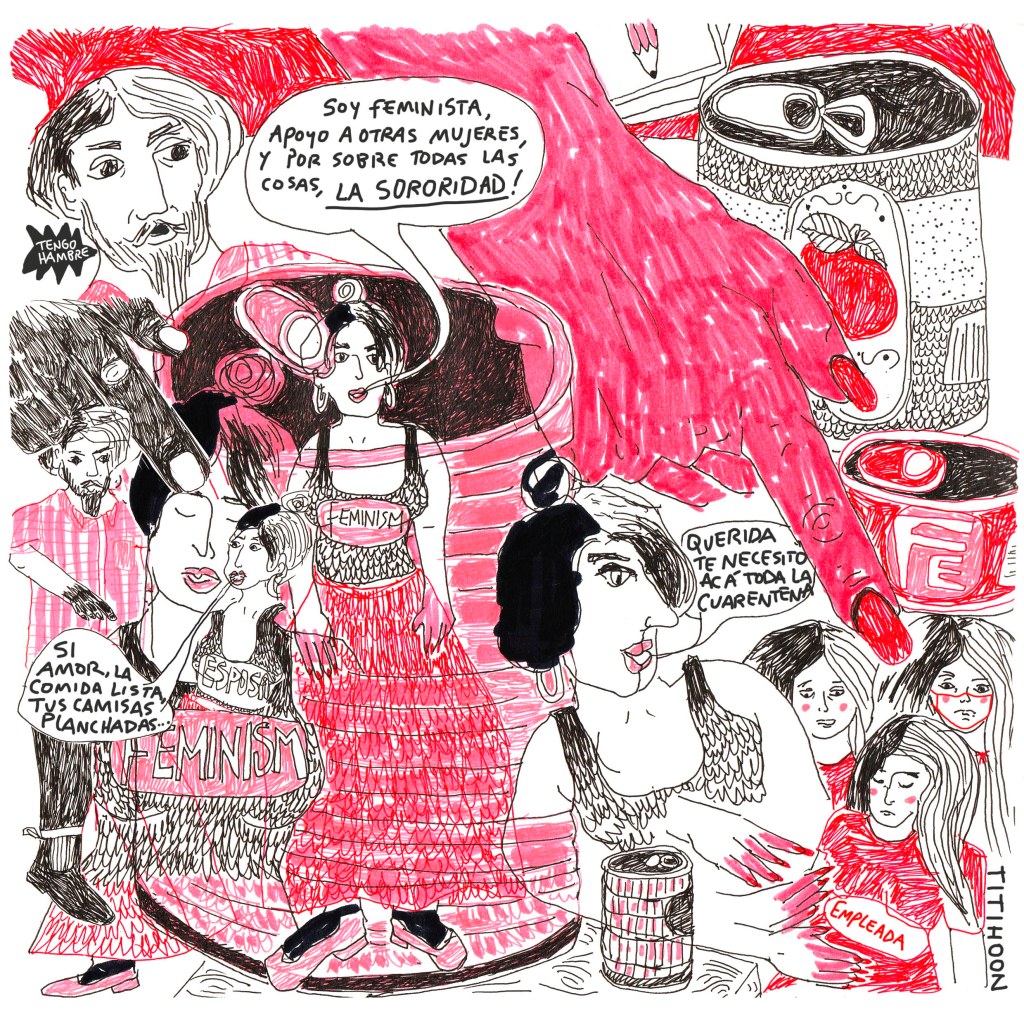 Y ahí aparece la sororidad enlatada y feminismo de paquete, como yo lo llamo. Ese feminismo del que la mujer a la que cuido su bebé habla con la boca llena de dientes perfectamente arreglados. Mientras ella se da a sí misma palmaditas en la espalda y se cuelga medallas por ser una mujer feminista y sorora que apoya a otras mujeres…en este caso una que cuida de su hija y otra que limpia su casa. A las que paga dinero en mano y siente que les está haciendo un favor. Sin importarle que pongan su seguridad en peligro, porque claro, ella necesita tiempo para hacer sus cosas, lo que sea que esto es. Y porque tiene dinero suficiente para pagar a otras mujeres y se ocupen de los cuidados. Porque para los cuidados, están siempre las mujeres, sobre todo si son personas en situación mas vulnerable que la tuya.